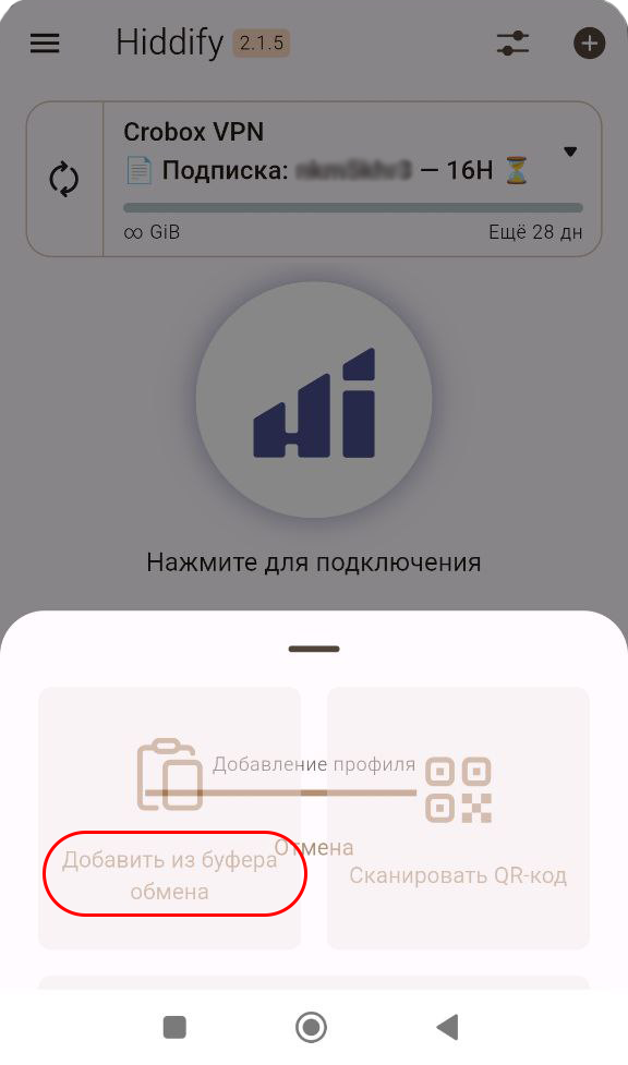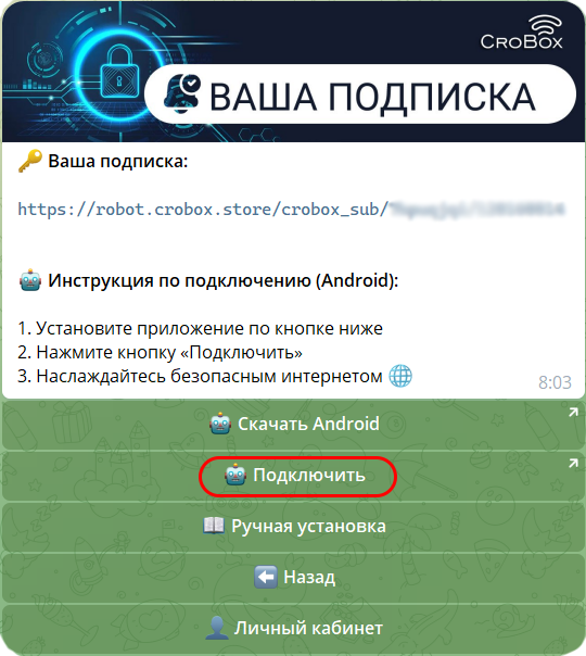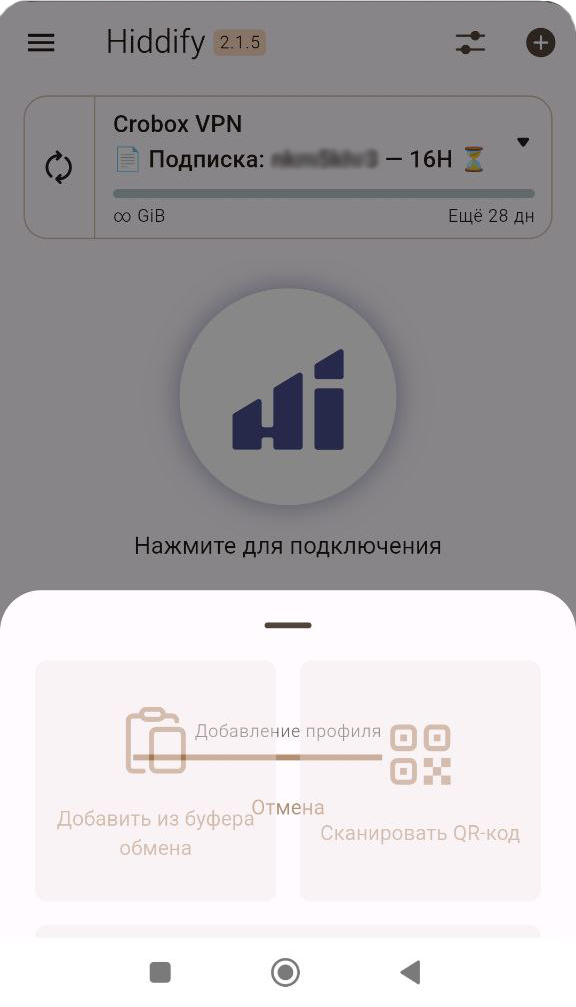 Установка ключа VPN в автоматическом режиме через меню нашего бота работает только при установке приложения Hiddify