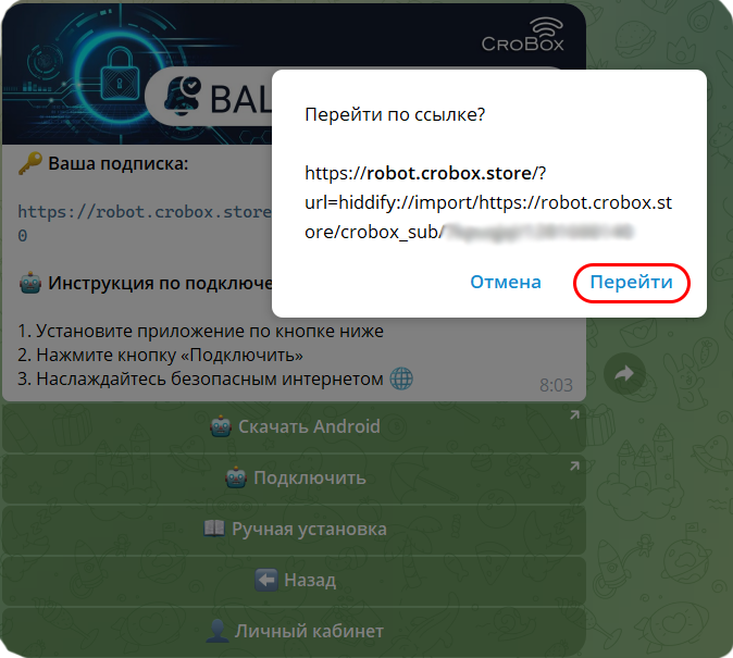 5) Откроется ссылка перехода в приложение. Нажмите Перейти