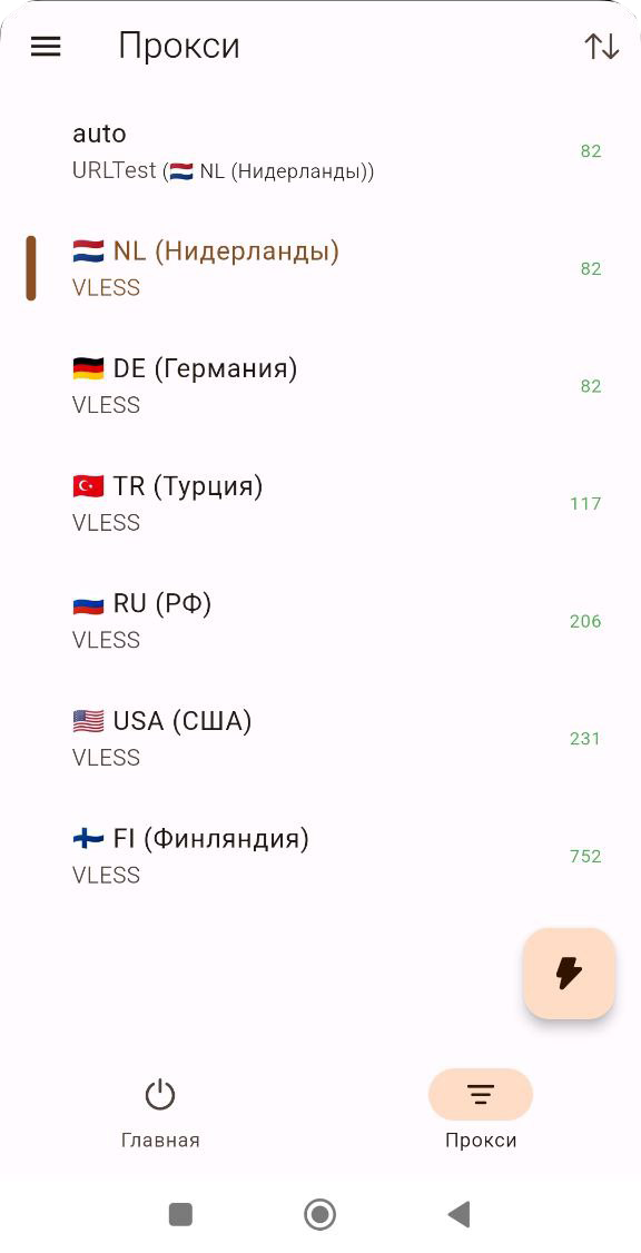 Для изменения страны ПРИ ВКЛЮЧЕННОМ VPN откройте в меню вкладку «Прокси» и выберите нужную локацию.